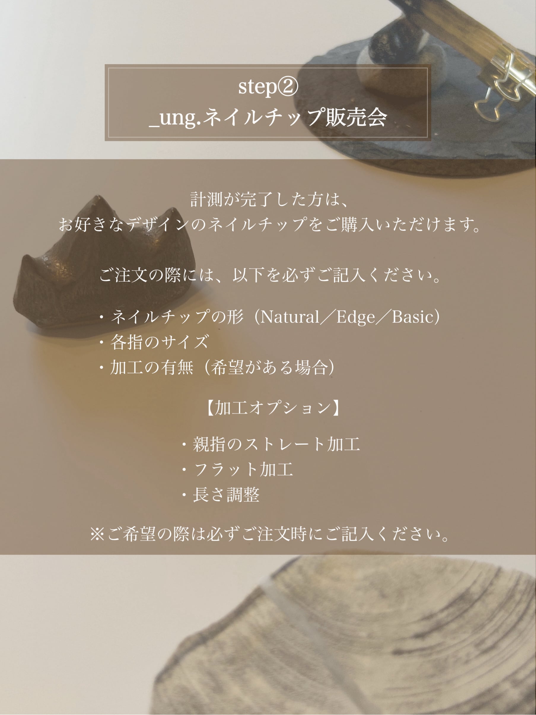 _ung. のネイルチップは、お客様一人ひとりに合わせて心を込めて制作しています。